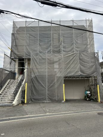 本日より、大阪狭山市にてMビル様の外壁塗装工事がスタートいたしました。