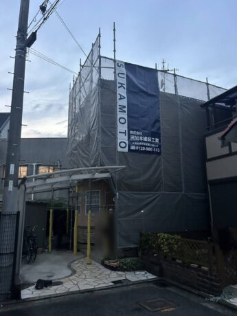 堺市北区W様邸が着工致しました。工事内容ですが外壁塗装、屋根塗装、シール工事、防水工事を行います。工期は約3週間程の予定です。ご近隣の皆様には何かとご迷惑をおかけしますがご協力の程よろしくお願いいたします。