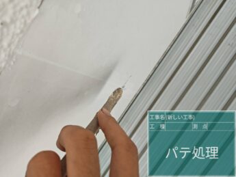 ケイカル板を留めているビスの跡にパテ処理を行います。