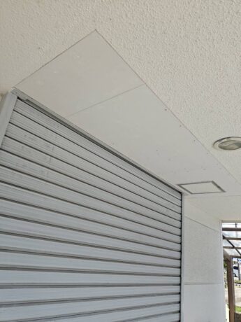 堺市中区にて貸し倉庫のシャッター修理に伴い天井塗装のご依頼をいただきました。シャッターの点検と修理を行うために天井を捲りました。点検と修理の完了後に天井の復旧を行い既存塗膜に合わせて塗装をさせていただきました。