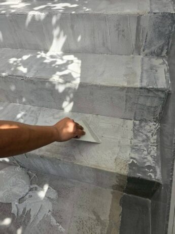 左官工事を行いタイルの目地詰めと不陸調整を行いました。