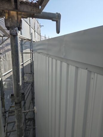 この度は工事のご依頼をいただきありがとうございます。泉佐野市にて三菱自動車の雨漏り修繕工事をさせていただきました。大雨の吹き降りの強い日に雨漏りがあるとのことでご相談をいただきました。現地を確認させていただいたところ屋根の笠木の掛かりが浅いことや面戸のコーキングが切れていたりと雨漏りの原因となる箇所が数ヶ所見受けられました。散水調査をさせていただき浸水箇所を特定させていただき板金工事とコーキング材の充填をさせていただきました。
