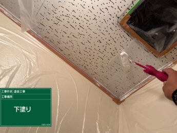 清掃後に下塗りのシーラーを塗っていきます。耐久性に影響する重要な作業工程になります。