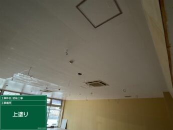 この度は工事のご依頼をいただきありがとうございます。泉大津市にて店舗内の塗装工事をさせていいただきました。新しくご入居様がお決まりになられたということで室内の塗装工事のご相談をいただきました。壁に関してはクロスでの施工、天井は塗装されるとのことでした。色は現状色の白色で塗装させていただきました。