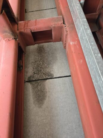 外壁の目地部分から雨水が浸水して裏側に染みが見られました。