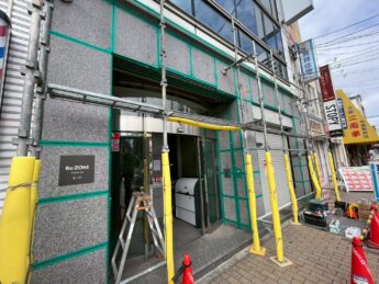 この度は工事のご依頼をいただきありがとうございます。東大阪市にて雨漏り修繕工事のご依頼をいただきました。ビルのシャッターが大雨のの日に誤作動を起こして勝手に下りてしまうとのことでご相談をいただきました。現地を確認させていただいたところシャッターのスイッチボタンの位置に雨水がかかっている形跡がありました。外壁が石調風のサイディングボードで目地のコーキング材の劣化や複数の穴なども見られました。ご提案としまして散水を行い浸水箇所を特定した上で目地のコーキング材の打ち替えをおすすめさせていただきました。