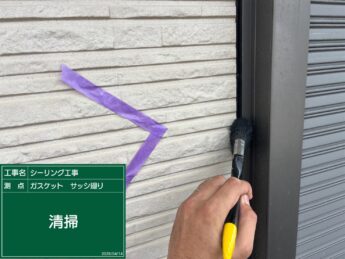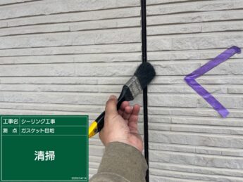 シーリング材を充填する前に清掃を行います。これを怠ると、施工後すぐにシーリング材が剥がれる