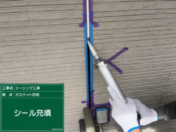 プライマーで下地を整えた後、新しいシーリング材を目地にたっぷりと充填していきます。