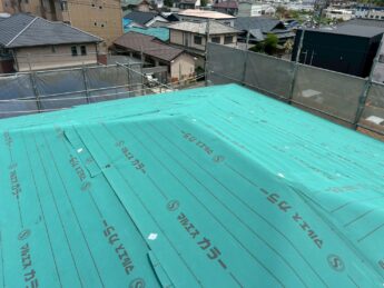 新しい屋根材の下に敷くこの防水シートが雨漏り防止の要となります。