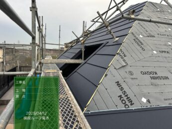 ルーフィングを貼った後にガルテクトを葺いていきます。