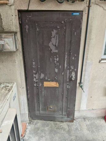 この度は工事のご依頼をいただきありがとうございます。大阪市にて賃貸物件の住戸玄関扉の塗装工事を行いました。玄関扉が酷く剥がれているため塗装をしてほしいとのことでした。現地を確認させ……